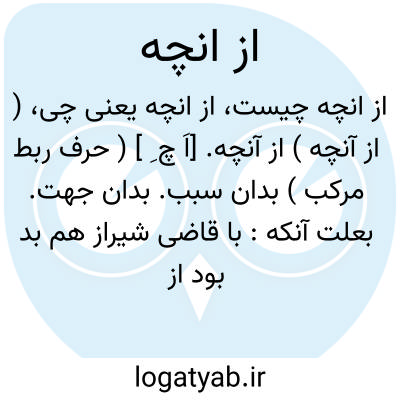 ( از آنچه ) ۱ - از چیز معهود یا مذکور. ۲ - بدان سبب بدان جهت بعلت آن که: ( با قاضی شیراز هم بد بود از آنچه باری چند امیر محمود گفته بود که قاضی را وزارت شاید. ) ( بیهقی. )