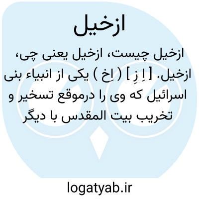 ازخیل. [ اِ زِ ] ( اِخ ) یکی از انبیاء بنی اسرائیل که وی را درموقع تسخیر و تخریب بیت المقدس با دیگر اسرائیلیان اسیر کرده ببابل بردند و او پیشگوئیهای بسیار درباره ٔبازگشت بنی اسرائیل به بیت المقدس و خاتمه یافتن اسارت آنان و مغیبات دیگر داشته است. کتاب فصیحی محتوی بر اخبار و اوضاع آن ایام دارد و خاتمه احوال وی مجهول است. ( قاموس الاعلام ترکی ). و رجوع به حزقیل شود.