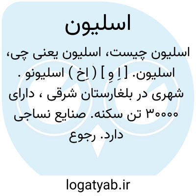 اسلیون. [ اِ وِ ] ( اِخ ) اسلیونو. شهری در بلغارستان شرقی، دارای 30000 تن سکنه. صنایع نساجی دارد. رجوع باسلیمیه شود.