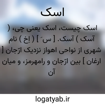 ( آسک ) آسک. [ س َ ] ( اِخ ) نام شهری از نواحی اهواز نزدیک ارّجان [ ارغان ] بین ارّجان و رامهرمز، و میان آن و شیراز شصت فرسنگ است.
