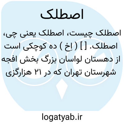 اصطلک. [ ] ( اِخ ) ده کوچکی است از دهستان لواسان بزرگ بخش افجه شهرستان تهران که در 21 هزارگزی جنوب خاور گلندوک، سر راه شوسه تهران به دماوند واقع است. محلی است کوهستانی، سردسیر و سکنه آن که شیعه و فارسی زبان اند 102 تن است. آب آن از قنات تأمین میشود و محصول آن غلات، بنشن و سیب زمینی است. دارای باغستانهایی است. شغل اهالی زراعت و راه آن ماشین رو است. این ده دو محله است، یکی بالا و دیگری پایین. ( از فرهنگ جغرافیائی ایران ج 1 ).