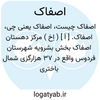 اصفاک. [ اَ ] ( اِخ ) نام یکی از دهستانهای هفتگانه شهرستان فردوس که واقع است در جنوب دهستان نیگنان و شمال دهستان کروند. هوای دهستان گرم و در تابستان سوزان است. آب کلیه قراء ازقنوات تأمین میشود و محصول عمده آنها غلات، تریاک،گاورس و میوه هاست. کلیه آبادیهای این دهستان 18 آبادی بزرگ و کوچک و مجموع نفوس آنها 417 تن است. شغل مردان زراعت و گله داری و صنایع دستی زنان قالیچه بافی و کرباس بافی است. ( از فرهنگ جغرافیائی ایران ج 9 ).
