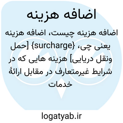 {surcharge} [حمل ونقل دریایی] هزینه هایی که در شرایط غیرمتعارف در مقابل ارائۀ خدمات ویژه از سفارش دهنده دریافت می شود، مانند هزینۀ ورود کشتی به منطقۀ جنگی