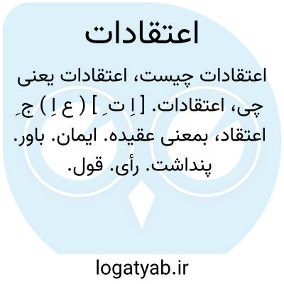 اعتقادات. [ اِ ت ِ ] ( ع اِ ) ج ِ اعتقاد، بمعنی عقیده. ایمان. باور. پنداشت. رأی. قول.