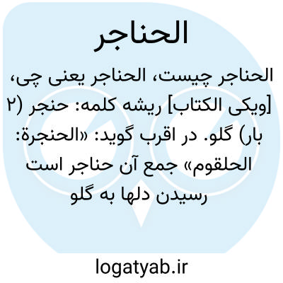 گلو. در اقرب گوید: «الحنجرة: الحلقوم» جمع آن حناجر است رسیدن دلها به گلو کنایه از شدّت اضطراب و ترس است یعنی گوئی قلب‏ها از جای خود بالا آمده و به گلو رسیده‏اند. طبرسی آن را جوف حلقوم معنی کرده است.