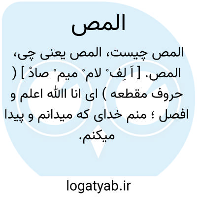 المص. [ اَ لِف ْ لام ْ میم ْ صادْ ] ( حروف مقطعه ) ای انا اﷲ اعلم و افصل؛ منم خدای که میدانم و پیدا میکنم. ( ترجمان علامه جرجانی تهذیب عادل بن علی ). از فواتح سور قرآن است و سوره اعراف بدان آغاز میشود. در تفسیر کشف الاسرار ( ج 3 ص 548 ) آمده: «المص » نامی است از نامهای قرآن بقول حسن، آنکه گفت: «کتاب انزل الیک » تا معلوم شود که نام قرآن است. میگوید: قرآن نامه ایست فروفرستاده بتو. ابن عباس گفت: انااﷲ الصادق، بروایتی دیگر هم از وی: انا اﷲ افصل. زیدبن علی گفت: انا اﷲ الفاصل. عکرمه گفت: انا اﷲ اعلم و أصدق. عطأبن ابی رباح گفت: ثنائی است که اﷲ بر خویشتن کرد بسزای خویش و بقدر خویش. ابن عباس گفت: سوگند است که اﷲ یاد کرد بنام خویش و صفت خویش. قومی گفتند: معنی این همانست که گفت: «الم نشرح لک صدرک ؟» ( قرآن 1/94 ). و شرح این کلمات در صدر سورة البقره مستوفی رفت - انتهی. و رجوع به الم و فواتح سور شود.