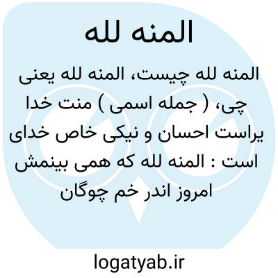 ( جمله اسمی ) منت خدا یراست احسان و نیکی خاص خدای است: المنه لله که همی بینمش امروز اندر خم چوگان مراد تو چو گویی. ( انوری ) المنه لله که در میکده بازست ز آن رو که مرا بر دراو روی نیازست. ( حافظ )