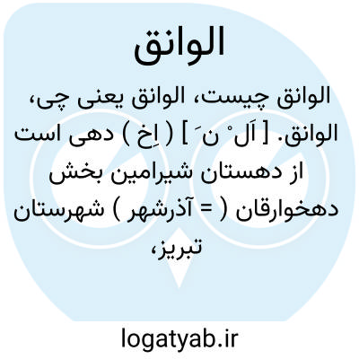 الوانق. [ اَل ْ ن َ ] ( اِخ ) دهی است از دهستان شیرامین بخش دهخوارقان ( = آذرشهر ) شهرستان تبریز، در 22 هزارگزی شوسه مراغه - تبریز. در جلگه واقع و معتدل است. سکنه آن 428 تن شیعه اند و بترکی سخن میگویند. آب آن از چشمه و محصول آن غلات، حبوب و پنبه، و شغل مردم زراعت و گله داری است. راه مالرو دارد. ( از فرهنگ جغرافیایی ایران ج 4 ).