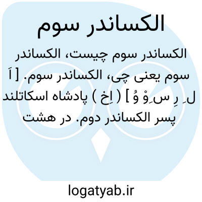 الکساندر سوم. [ اَ ل ِ رِ س ِوْ وُ ] ( اِخ ) پادشاه اسکاتلند پسر الکساندر دوم. در هشت سالگی بسلطنت رسید و از 1246 تا 1249 م. حکومت کرد. در زمان سلطنت وی نروژیان برخی از نواحی اسکاتلند را بتصرف آوردند و او با ایشان جنگ کرد، و سرانجام میان دو دولت صلح برقرار شد. ( از قاموس الاعلام ترکی ذیل آلکساندر ). الکساندر سوم. [ اَ ل ِ رِ س ِوْ وُ ] ( اِخ ) پسر الکساندر دوم. امپراطور روسیه ( 1845-1894م. ) و بسال 1881 م. بتخت نشست. او دوست و متحد فرانسه بود.
