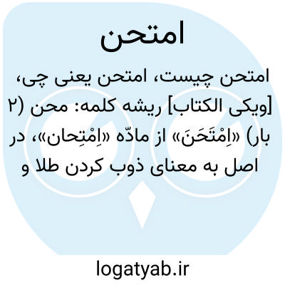 آزمایش کردن. گفتهاند مراد از امتحان در آیه عادت دادن است یعنی آنان کسانی اند که خدا قلوبشان را به تقوی عادت داده است. آزمایش کنید و ببینید که واقعاً مؤمنهاند یا نه؟ این کلمه دوبار بیشتر در قرآن نیامده است.