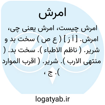 امرش. [ اَ رَ ] ( ع ص ) سخت بد و شریر. ( ناظم الاطباء ). سخت بد. ( منتهی الارب ). شریر. ( اقرب الموارد ). ج، مُرش. ( از اقرب الموارد ).