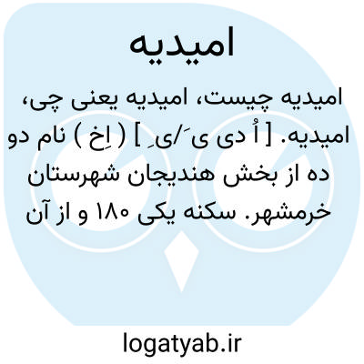 امیدیه. [ اُ دی ی َ/ی ِ ] ( اِخ ) نام دو ده از بخش هندیجان شهرستان خرمشهر. سکنه یکی 180 و از آن دیگری 100 تن است. محصول آن غلات وآبش از چاه است. ( از فرهنگ جغرافیائی ایران ج 6 ).