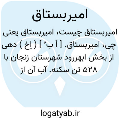 امیربستاق. [ اَ ب ُ ] ( اِخ ) دهی از بخش ابهررود شهرستان زنجان با 528 تن سکنه. آب آن از زهاب رودخانه عباس آباد و محصول آن غلات دیمی، قلمستان و عسل است. ( از فرهنگ جغرافیائی ایران ج 2 ).