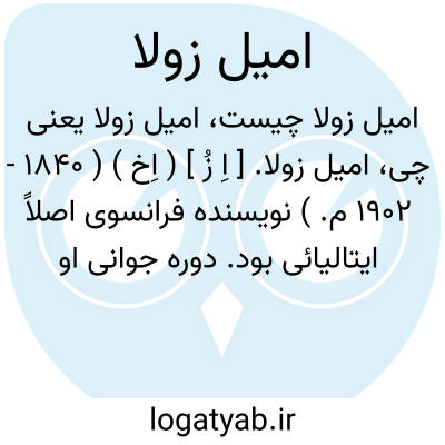 امیل زولا. [ اِ زُ ] ( اِخ ) ( 1840 - 1902 م. ) نویسنده فرانسوی اصلاً ایتالیائی بود. دوره جوانی او بفقر گذشت. سرانجام از نویسندگی توانگرشد. وی در آثار خود حیات بشر را بیشتر از جنبه شهوات و منافع مادی آن وصف کرده و پست ترین و ناپسندترین صورتهای طبیعت آدمی را آشکار ساخته است. از آثار معروف او یکی سلسله داستان روگون ماکار است که در بیست مجلد نگاشته و در آن احوال اجتماعی و طبیعی خانواده ای را در دوره امپراتوری دوم فرانسه تشریح کرده است، دیگر کتاب ترز راکن است که از جمله شاهکارهای او محسوب می شود. ( از تاریخ قرن نوزدهم و معاصر آلبر ماله ترجمه نصراﷲ فلسفی ص 247 ). و رجوع به زولا شود.