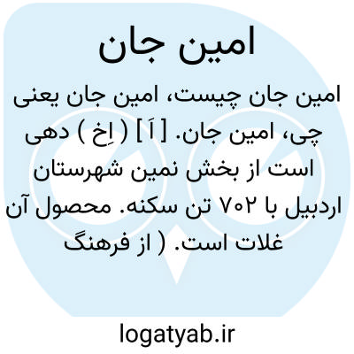 امین جان. [ اَ ] ( اِخ ) دهی است از بخش نمین شهرستان اردبیل با 702 تن سکنه. محصول آن غلات است. ( از فرهنگ جغرافیائی ایران ج 4 ).
