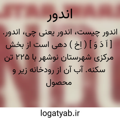 اندور. [ اَ دَ وَ ] ( اِخ ) دهی است از بخش مرکزی شهرستان نوشهر با 225 تن سکنه. آب آن از رودخانه زیر و محصول آن برنج است. ( از فرهنگ جغرافیایی ایران ج 3 ).