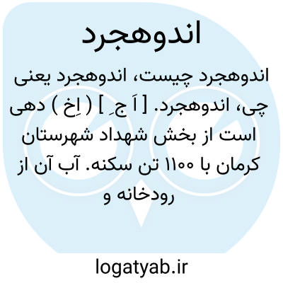 اندوهجرد. [ اَ ج ِ ] ( اِخ ) دهی است از بخش شهداد شهرستان کرمان با 1100 تن سکنه. آب آن از رودخانه و محصول آن خرما، غلات و میوه است. ( از فرهنگ جغرافیایی ایران ج 8 ).