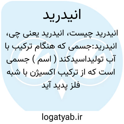 ( اسم ) جسمی است که از ترکیب اکسیژن با شبه فلز پدید آید و چون با آب ترکیب شود تولید اسید کند مثلا دود بیرنگی که از سوختن گوگرد در هوا یا اکسیژن بدست آید به انیدرید سولفورو موسوم است زیرا با آب اسید میدهد و رنگ محلول آفتاب گردان را قرمز میسازد. انیدریدها بسیارند از جمل. آنها انیدرید استیک انیدرید سولفورو انیدرید سولفوریک و انیدرید کربنیک است.