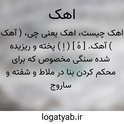 ( آهک ) آهک. [ هََ ] ( اِ ) پخته و ریزیده شده سنگی مخصوص که برای محکم کردن بنا در ملاط و شفته و ساروج آمیزند. کلس. اَژه. نوره. جبصین. صاروج. اهک: