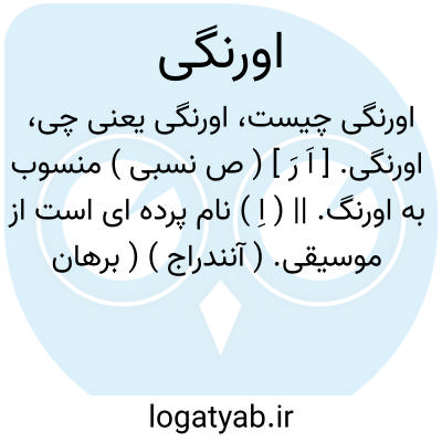 اورنگی. [ اَ رَ ] ( ص نسبی ) منسوب به اورنگ. || ( اِ ) نام پرده ای است از موسیقی. ( آنندراج ) ( برهان )( انجمن آرا ) ( مؤید الفضلا ). نام لحن سیم از سی لحن باربد. ( آنندراج ) ( برهان ) ( مؤید الفضلا ):