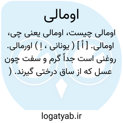 اومالی. [ اُ ] ( یونانی، اِ ) اورمالی. روغنی است جداً گرم و سفت چون عسل که از ساق درختی گیرند. ( مفردات قانون ابوعلی ص 160 ).دهن العسل و آنرا عسل داود هم گویند گرم و تر است درچهارم. ( برهان ) ( هفت قلزم ). رجوع به اورمالی شود.