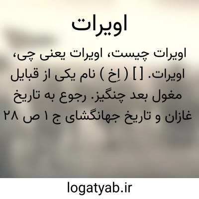 اویرات. [ ] ( اِخ ) نام یکی از قبایل مغول بعد چنگیز. رجوع به تاریخ غازان و تاریخ جهانگشای ج 1 ص 28 و ج 2 ص 242 و حبیب السیر شود.