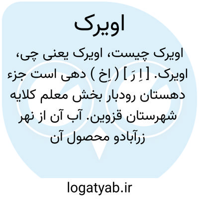 اویرک. [ اِ رَ ] ( اِخ ) دهی است جزء دهستان رودبار بخش معلم کلایه شهرستان قزوین. آب آن از نهر زرآبادو محصول آن غلات و گردو است. میگویند نزدیک آبادی معدن مس وجود دارد. ( از فرهنگ جغرافیایی ایران ج 1 ).