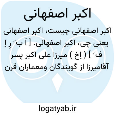 اکبر اصفهانی. [ اَ ب َ رِ اِ ف َ ] ( اِخ ) میرزا علی اکبر پسر آقامیرزا از گویندگان ومعماران قرن یازدهم اصفهان بود. بیت زیر او راست: گر خاک شود دشمن وبر باد رود غافل نشوی که باز گردی دارد.( از قاموس الاعلام ترکی ).و رجوع به فرهنگ سخنوران شود.