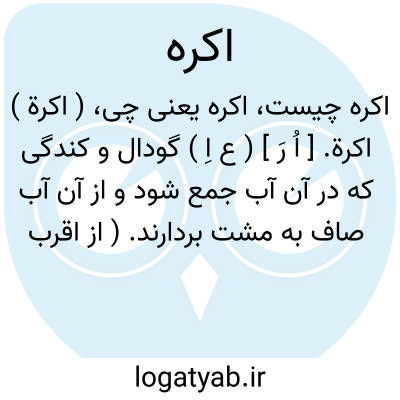 ( اکرة ) اکرة. [ اُ رَ ] ( ع اِ ) گودال و کندگی که در آن آب جمع شود و از آن آب صاف به مشت بردارند. ( از اقرب الموارد ) ( از آنندراج ) ( ناظم الاطباء ) ( منتهی الارب ). مغاک. ج، اُکَر. ( مهذب الاسماء ). || لغتی است در کُرَه. ( از اقرب الموارد ) ( منتهی الارب ). کره. گوی. ( یادداشت مؤلف ). رجوع به کرة شود.
