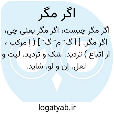 اگر مگر. [ اَ گ َ م َ گ َ ] ( اِ مرکب، از اتباع ) تردید. شک و تردید. لیت و لعل. اِن و لو. شاید. باشد که. لم ولانسلم. قولهای مختلف. ( یادداشت مؤلف ):