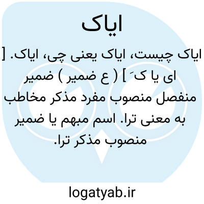 ایاک. [ ای یا ک ِ ] ( ع ضمیر ) اسم مبهم یا ضمیر منصوب برای خطاب به مؤنث. ( ناظم الاطباء ). رجوع به ایا شود.
