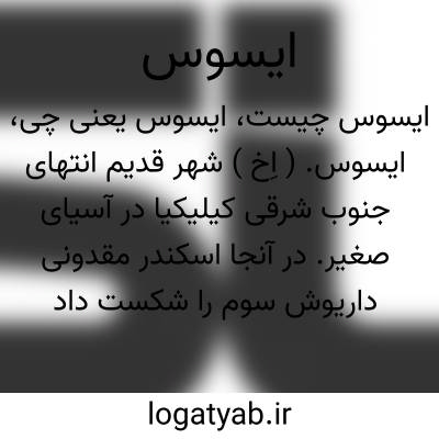 ایسوس. ( اِخ ) شهر قدیم انتهای جنوب شرقی کیلیکیا در آسیای صغیر. در آنجا اسکندر مقدونی داریوش سوم را شکست داد ( 333 ق.م. ) و هراکلیوس سپاهی از ایرانیان را مغلوب کرد. ( دایرة المعارف فارسی ). رجوع به ایران باستان ج 1 ص 163 و ج 2 صص 1001 - 1026 و 1301 - 1466 و ج 3 ص 2111 و 2172 و رجوع به فرهنگ فارسی معین شود.