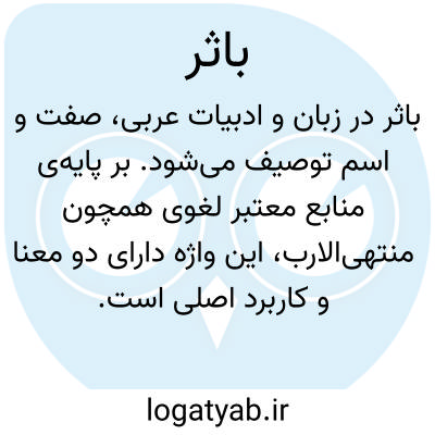 واژه‌ی باثر در زبان و ادبیات عربی، صفت و اسم توصیف می‌شود. بر پایه‌ی منابع معتبر لغوی همچون منتهی‌الارب، این واژه دارای دو معنا و کاربرد اصلی است. در معنای نخست، باثر به آبی اطلاق می‌گردد که از جای خود کنده و جاری شده و بر سطح زمین آشکار و نمایان باشد. این کاربرد، توصیفی است برای آبی که آرامش و سکون خود را از دست داده و به شکلی پویا و قابل رؤیت در صحنه ظاهر می‌شود. در معنای دوم، این واژه به‌صورت اسم و به معنی حاسد یا همان حسود به کار می‌رود. این استعاره احتمالاً از این مفهوم نشأت می‌گیرد که حسد، همان‌گونه که آب را از جای خود می‌کند تا ظاهر شود، آرامش درون را نیز برمی‌آشوبد و در چهره و رفتار فرد آشکار می‌سازد.