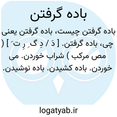 باده گرفتن. [ دَ / دِ گ ِ رِ ت َ ] ( مص مرکب ) شراب خوردن. می خوردن. باده کشیدن. باده نوشیدن. می زدن. می گساردن. باده خوردن. باده گساردن. و رجوع به آنندراج، و باده گساری و باده گساری کردن شود: