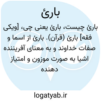 [ویکی فقه] بارئ (قرآن). بارئ از اسما و صفات خداوند و به معنای آفریننده اشیا به صورت موزون و امتیاز دهنده آنان از یکدیگر است.