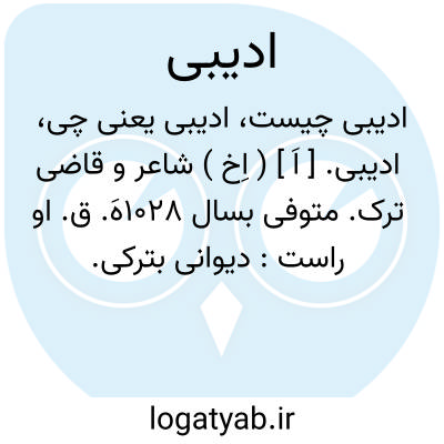ادیبی. [ اَ ] ( اِخ ) شاعر و قاضی ترک. متوفی بسال 1028هَ. ق. او راست: دیوانی بترکی.