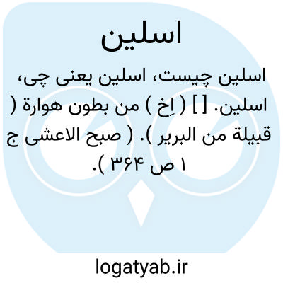 اسلین. [ ] ( اِخ ) من بطون هوارة ( قبیلة من البریر ). ( صبح الاعشی ج 1 ص 364 ).