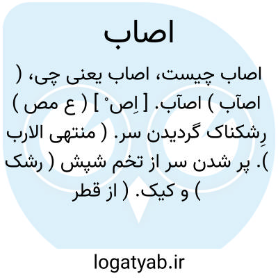 ( اصآب ) اصآب. [ اِص ْ ] ( ع مص ) رِشکناک گردیدن سر. ( منتهی الارب ). پر شدن سر از تخم شپش ( رشک ) و کیک. ( از قطر المحیط ). بسیاررشک شدن موی. ( تاج المصادر بیهقی ). رشک در موی افتادن. ( زوزنی ).