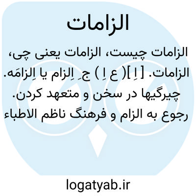 الزامات. [ اِ ]( ع اِ ) ج ِ اِلزام یا اِلزامَه. چیرگیها در سخن و متعهد کردن. رجوع به الزام و فرهنگ ناظم الاطباء شود.