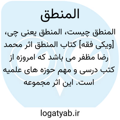 [ویکی نور] المنطق، اثر شیخ محمدرضا مظفر (متوفای 1383ق)، کتابی است کم نظیر در موضوع علم منطق که به زبان عربی نگارش یافته است.