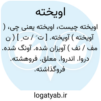 ( آویخته ) ( اسم ) ۱- آویزان شده معلق اندروا. ۲ - متشبث. ۳ - مائ خوذ مسئول معاقب.