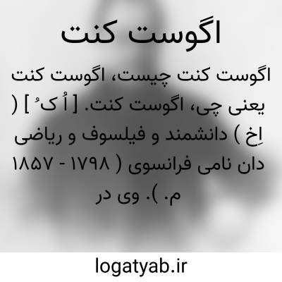 اگوست کنت. [ اُ ک ُ ] ( اِخ ) دانشمند و فیلسوف و ریاضی دان نامی فرانسوی ( 1798 - 1857 م. ). وی در مونپولیه به دنیا آمد و فلسفه اثباتی را بنیان نهاد و کتابی در فلسفه اثباتی ( 1830 - 1842 م. ) بنام کور دو فیلوزوفی پوزیتوی منتشر کرد که یکی از شاهکارهای وی بشمار می رود. اگوست کنت عقاید و روش کار خود را با یک اندیشه انساندوستی مذهبی تکمیل کرده است. ( ازلاروس ). اگوست کنت در مدرسه پلی تکنیک پاریس تحصیل کرد. در خانه خود درس می داد. جان استوارت میل به وی کمک مالی می کرد. شش جلد کتاب از فلسفه پوزی تیویسم وکتابهایی نیز در هندسه تحلیلی و در علم هیأت نوشت. وی در پایان عمر دیوانه شد و در حال جنون فوت کرد.( از تاریخ فلسفه سیاسی تألیف پازارگاردی ص 759 ).