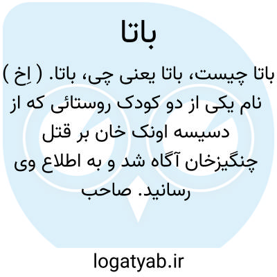 باتا. ( اِخ ) نام یکی از دو کودک روستائی که از دسیسه اونک خان بر قتل چنگیزخان آگاه شد و به اطلاع وی رسانید. صاحب حبیب السیر آرد: اونک خان خاطر بر آن قرار داد که سحرگاهی که چنگیزخان در خواب غفلت باشد بر سرش تازد و مهم او را بر طبق دلخواه حُسّاد بسازد، قضا را در آن روز یکی از امراء صورت آن اندیشه را در خلوتی پیش خاتون خود حکایت میکرد و دو کودک که از رمه شیر آورده بودند و باتا و قیشلیق نام داشتند از بیرون خرگاه آن سخن را شنیده علی الفور متوجه اردوی چنگیزخان گشتند و کماهی حالات را بعرض رسانیدند... در وقت ظلام لیل که هر یک از آن دو خیل بمنزل خویش فرودآمدند... چنگیزخان نام کسانی را که در آن جنگ در ملازمتش بودند بر دفتر نوشته هر یک را منصبی مناسب مقرر فرمود و آن کودک را که خبر قصد اونک خان به وی رسانیده بود ترخان گردانید... و جمیع ترخانیان که در زمان سلاطین چنگیزخانی و خواقین تیمور گورکانی در بلاد ماوراءالنهر و خراسان اقامت داشتند از نسل باتا وقشلیق اند، و نسبت باتا و قشلیق [ به ] تکلبیکوت بن اوزناوت میرسد. ( حبیب السیر چ خیام ج 3 ص 19 و 20 ).