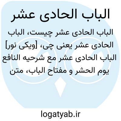 [ویکی شیعه] الباب الحادی عشر (کتاب). الباب الحادی عَشَر، باب یازدهم از منهاج الصّالح فی مختصر المصباح و از کتاب های کلامی و آموزشی در حوزه های علمیه شیعی، اثر علامه حلّی و در اثبات اصول عقاید شیعه.