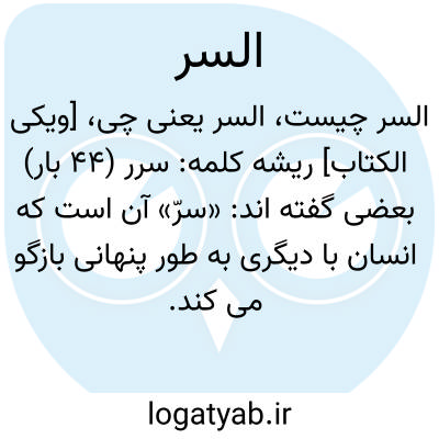 (به کسر و تشدید ر) نهان. امر پوشیده در صحاح گوید «السرّ: الذی یکتم» راغب گوید: حدیثی که در نفس مکتوم است،. اسرار: نهان کردن است،. یعنی دعوت خود را هم آشکار و هم نهان بر ایشان رساندم.. اسرار را به فتح همزه و کسر آن هر دو خواندهاند و در قرآنها به کسر همزه است یعنی خدا رازهای آنها و یا پنهان داشتنشان را میداند.. آنگاه که پیامبر به بعضی زنانش حدیثی در پنهانی گفت. سریره: مثل سرّ به معنی امر پوشیده است جمع آن سرائر میباشد (صحاح). در نهج البلاغه نامه 10 آمده «مُختَلِفَ الَلانِعیةِ وَالسَّریرَةِ». * یعنی ظالمان راز را پنهان کردند در المیزان آمده: این جمله برای مبالغه است زیرا که «اَسَّرُوا» نجوی بودن را میفهماند. راغب آن است که اصلاً راز را اظهار نکردند که نجوی گاهی بعداً آشکار میشود. *. نجوی راز گفتن و سرّ حدیث مکتوم در نفس است آیه صریح است در اینکه خدا هم حدیث نفس و سخن باطنی و هم راز گفتن را میشنود و سخنی چنانکه گفته. *. معنی آیه در «خفی» گذشت. *. معنی این دو آیه در «بلی» گذشت. امتحان شدن سرائر توأم با ظاهر شدن روز قیامت ظاهر میشود انسان را بر پوشاندن آنها نه نیروئی هست و نه یاری. این آیه نظیر. است.