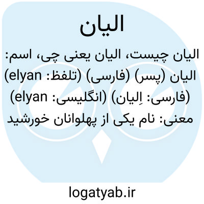 اسم: الیان (پسر) (فارسی) (تلفظ: elyan) (فارسی: اِلیان) (انگلیسی: elyan)