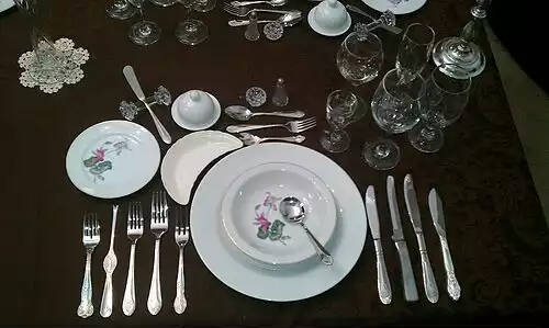 • در آداب صرف غذا: پیشخدمت برای سرو غذا باید در سمت چپ میهمان یا مشتری قرار گیرد و برای برداشتن بشقاب استفاده شده در سمت راست قرار گیرد. همیشه کارد سمت راست بشقاب قرار می گیرد و تیغه کارد به سمت داخل و به سمت بشقاب چیده می شود. دور از ادب است نوشیدن آب درون گیلاس مربوط به نوشیدنی مانند شراب و غیره. در مجله آمریکایی ریدرز دایجست برای آداب غذا خوردن آمده است: اگر در یک وعده غذایی با هشت نفر یا کمتر پشت یک میز غذاخوری نشسته اید، صبر کنید تا به شما تعارف زده شود و پیش از میزبان شروع به غذا خوردن نکنید. در میزهای بزرگ تر و بیش از ۸ نفر مانعی نیست که پیش از دیگران آغاز کنید.