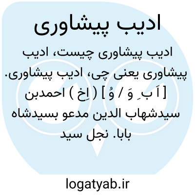 ادیب پیشاوری. [ اَ ب ِ وَ / وُ ] ( اِخ ) احمدبن سیدشهاب الدین مدعو بسیدشاه بابا. نجل سید عبدالرزاق رضوی. این سلسله از سادات را اجاق میخواندند و اغلب صاحب زهد وتقوی و اهل ذکر و دعا بودند و نسبت ایشان در سیر و سلوک بسلسله سهروردی میرسد. وی در حدود سال 1260 هَ. ق. در پیشاور متولد شد و چون بحد قابلیت تعلم رسید پدر او را بدبستان سپرد تا خواندن و نوشتن آموخت چنانکه خود در قیصرنامه بدین معنی اشاره کرده گوید: