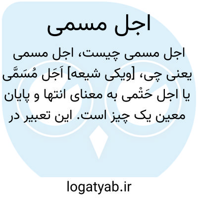 [ویکی شیعه] اَجَل مُسَمَّی یا اجل حَتْمی به معنای انتها و پایان معین یک چیز است. این تعبیر در قرآن کریم در معانی مختلفی به کار رفته است. قیامت کبری و پایان عمر طبیعی و حتمی انسان از معانی آن است که بیشترین کاربرد را در قرآن درد. اجل مسمی در مقابل اجل معلق قرار دارد.
