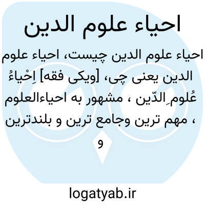 [ویکی فقه] اِحْیاءُ عُلوم ِالدّین، مشهور به احیاءالعلوم، مهم ترین وجامع ترین و بلندترین و پرآوازه ترین کتاب ابوحامد محمد بن محمد غزالی طوسی (۴۵۰- ۵۰۵ق /۱۰۵۸-۱۱۱۱م ) می باشد.